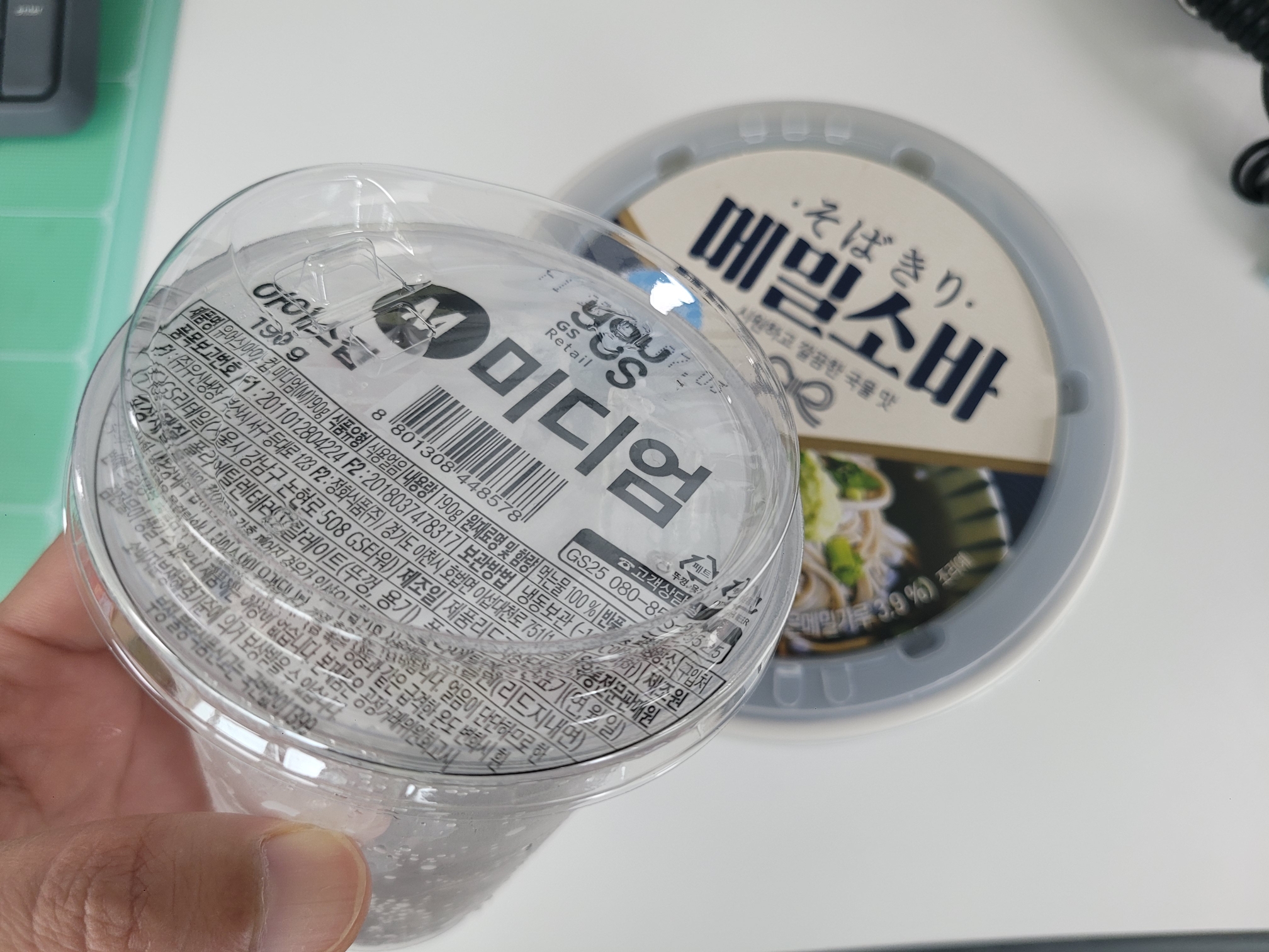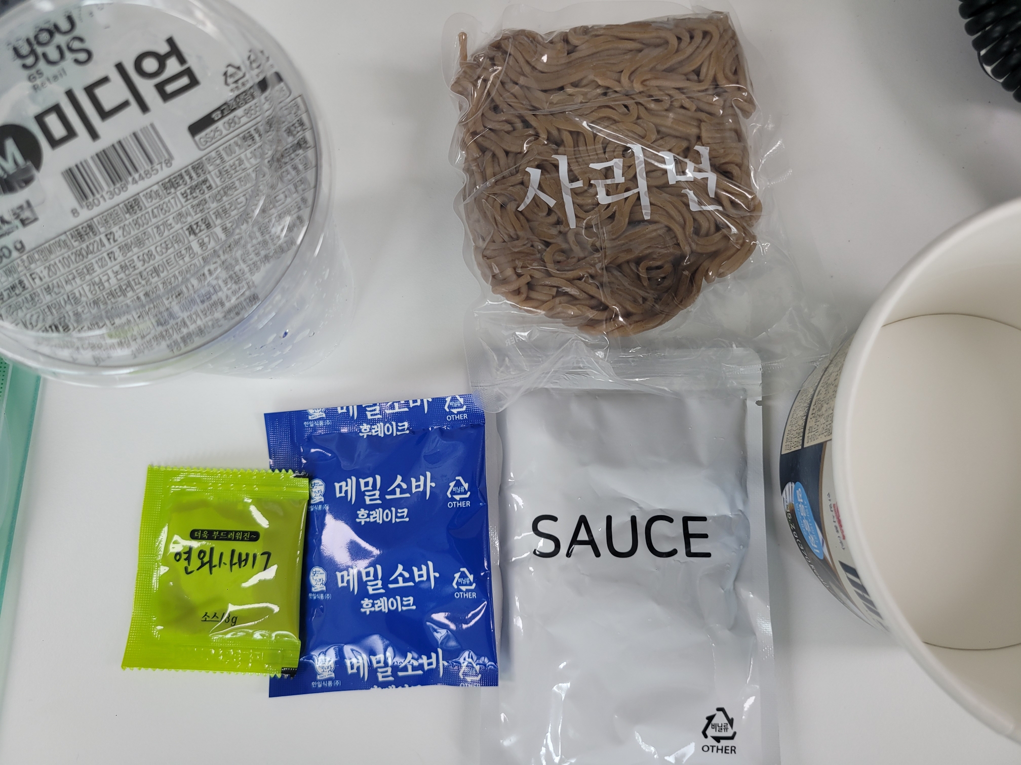 내 입엔 소스가 좀 짜서 냉모밀처럼 물을 조금 부어서 먹었다. 소스는 편의점에서 먹는 면 치고는 맛있다.