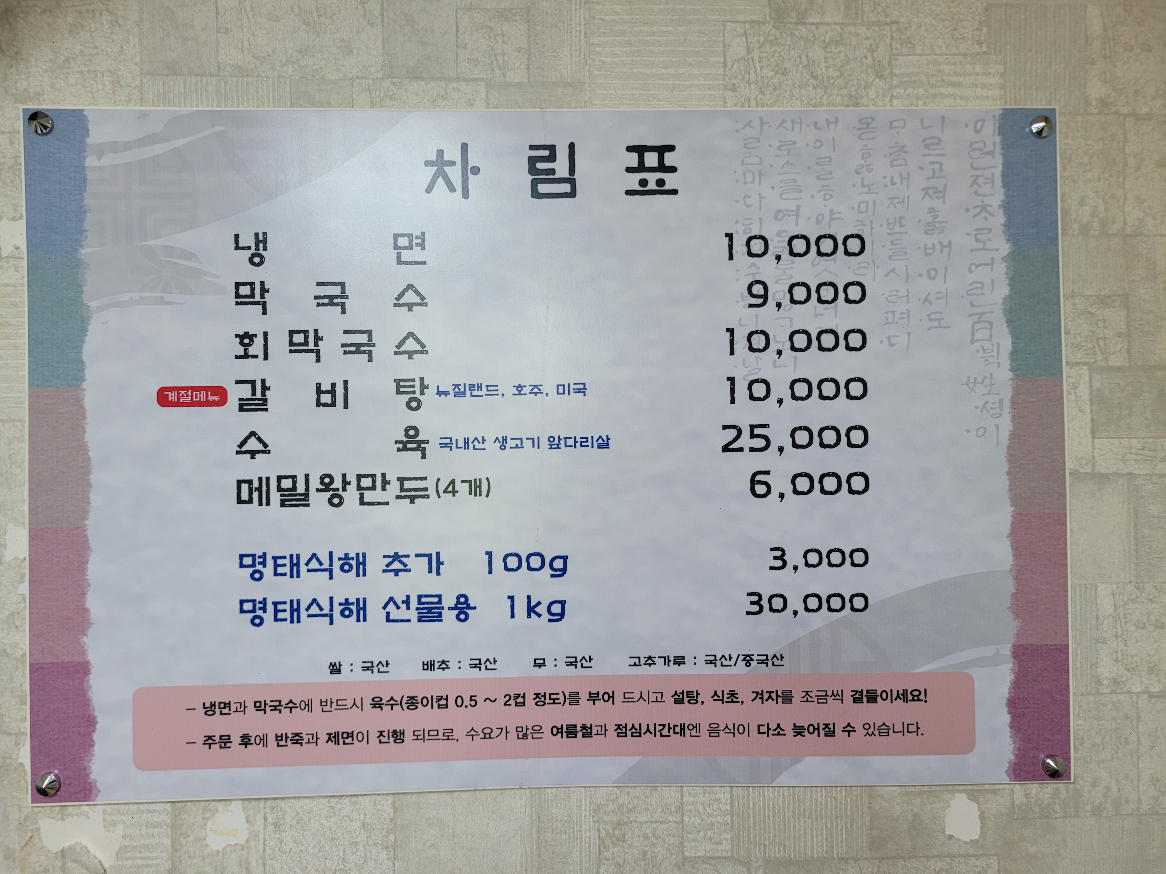 메뉴판은 이러하다