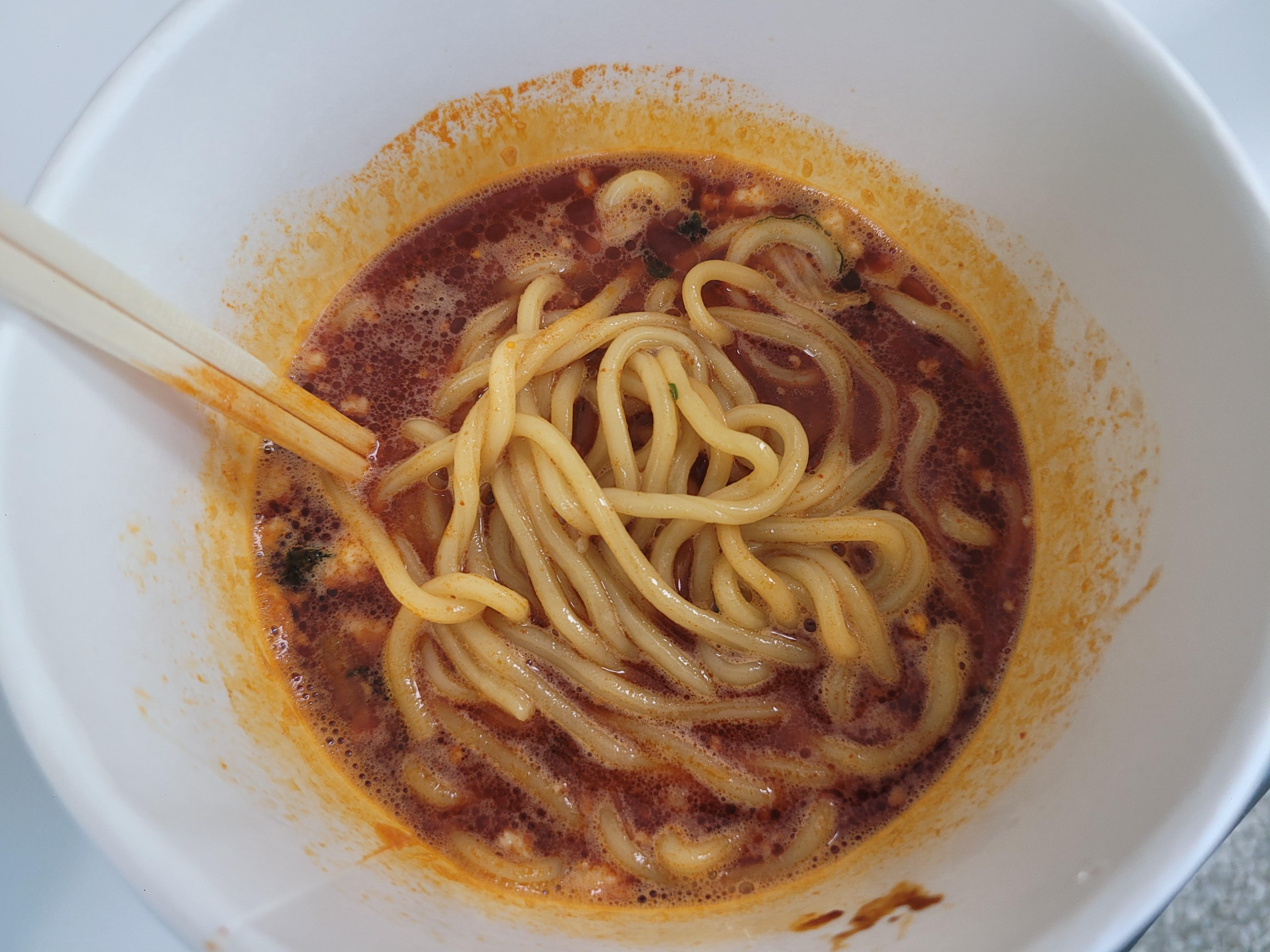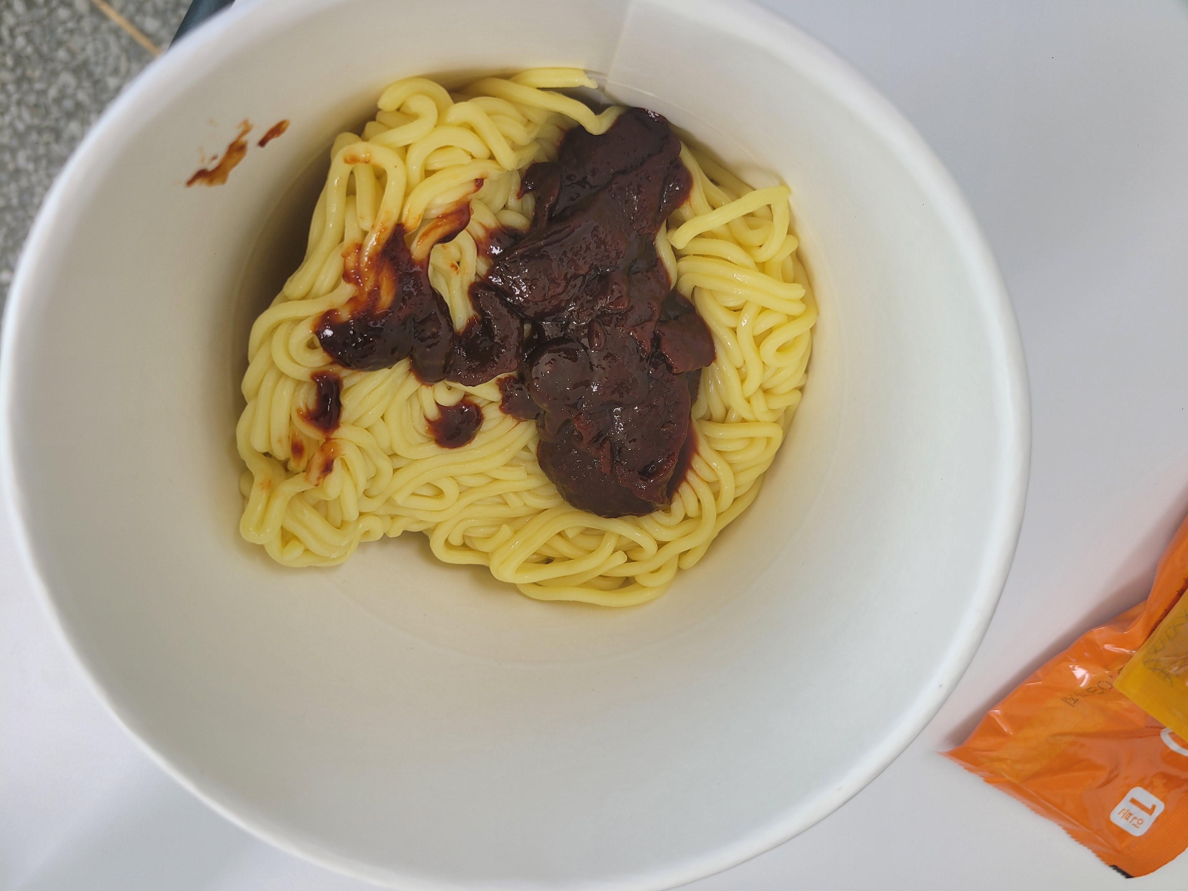 조리법은 면과 소스를 넣고 뜨거운 물을 부은 후