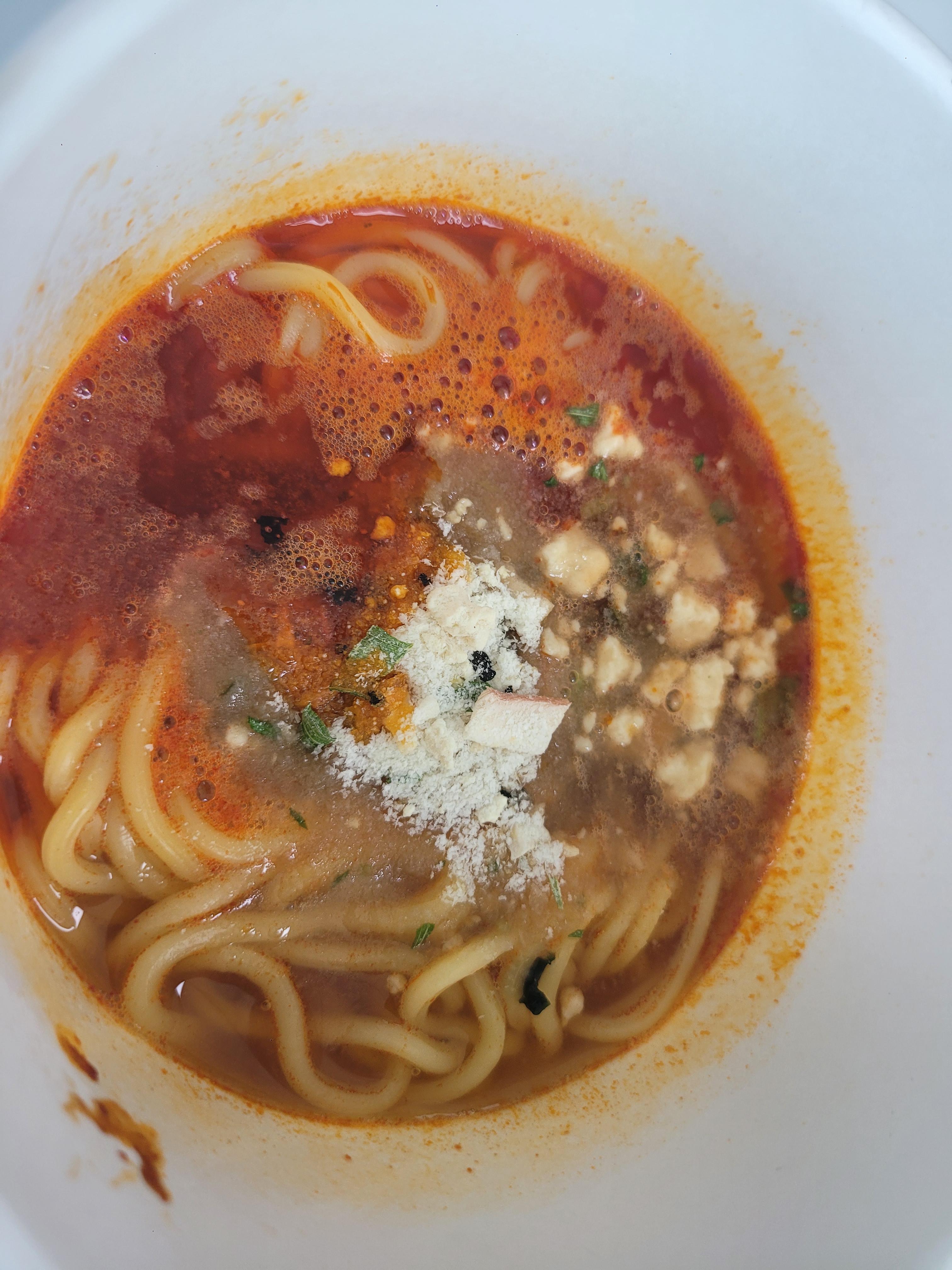오: 전자렌지에 돌린 후에 고명과 요리유 까지 넣은 이후