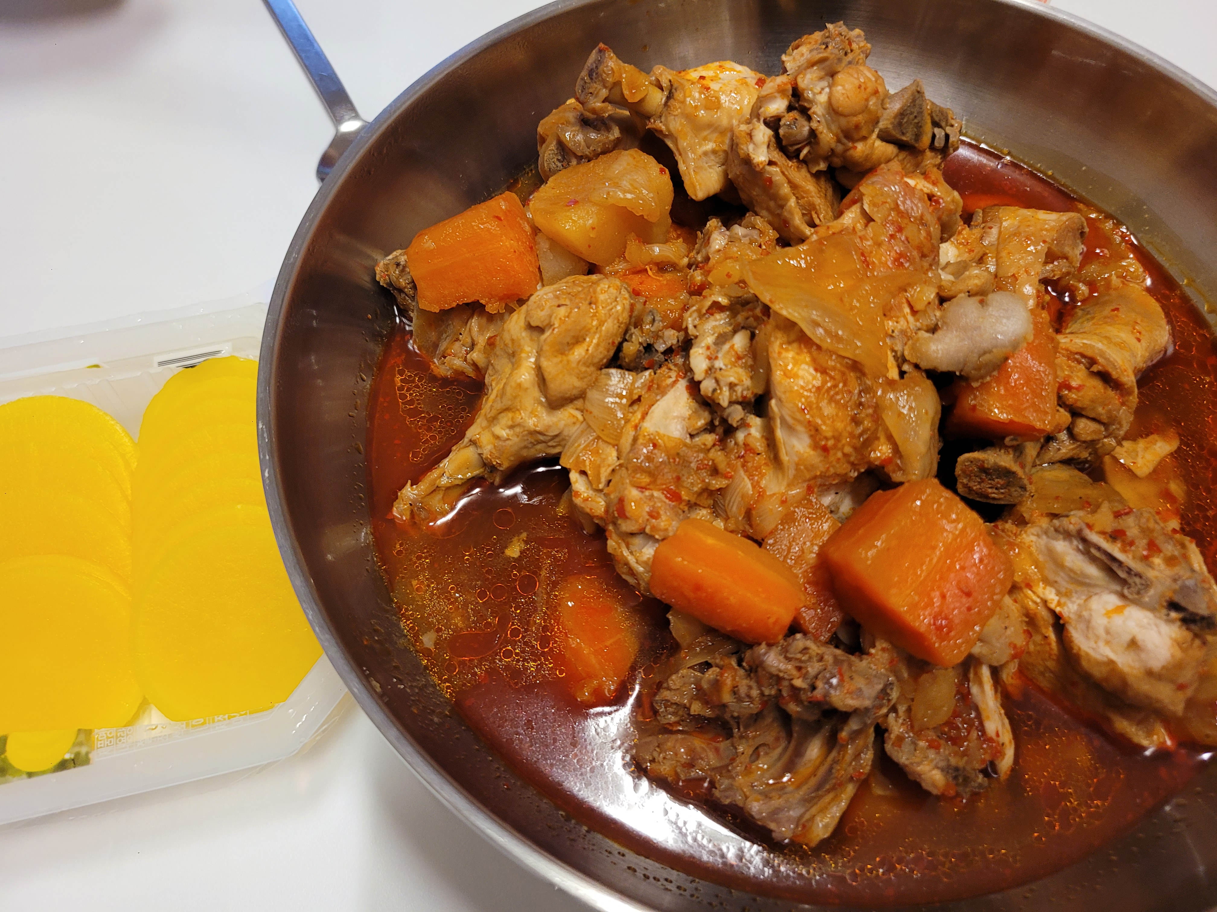 오늘은 배고파서 건이랑 닭볶음탕에 먹었다. 고기에 잘 어울림