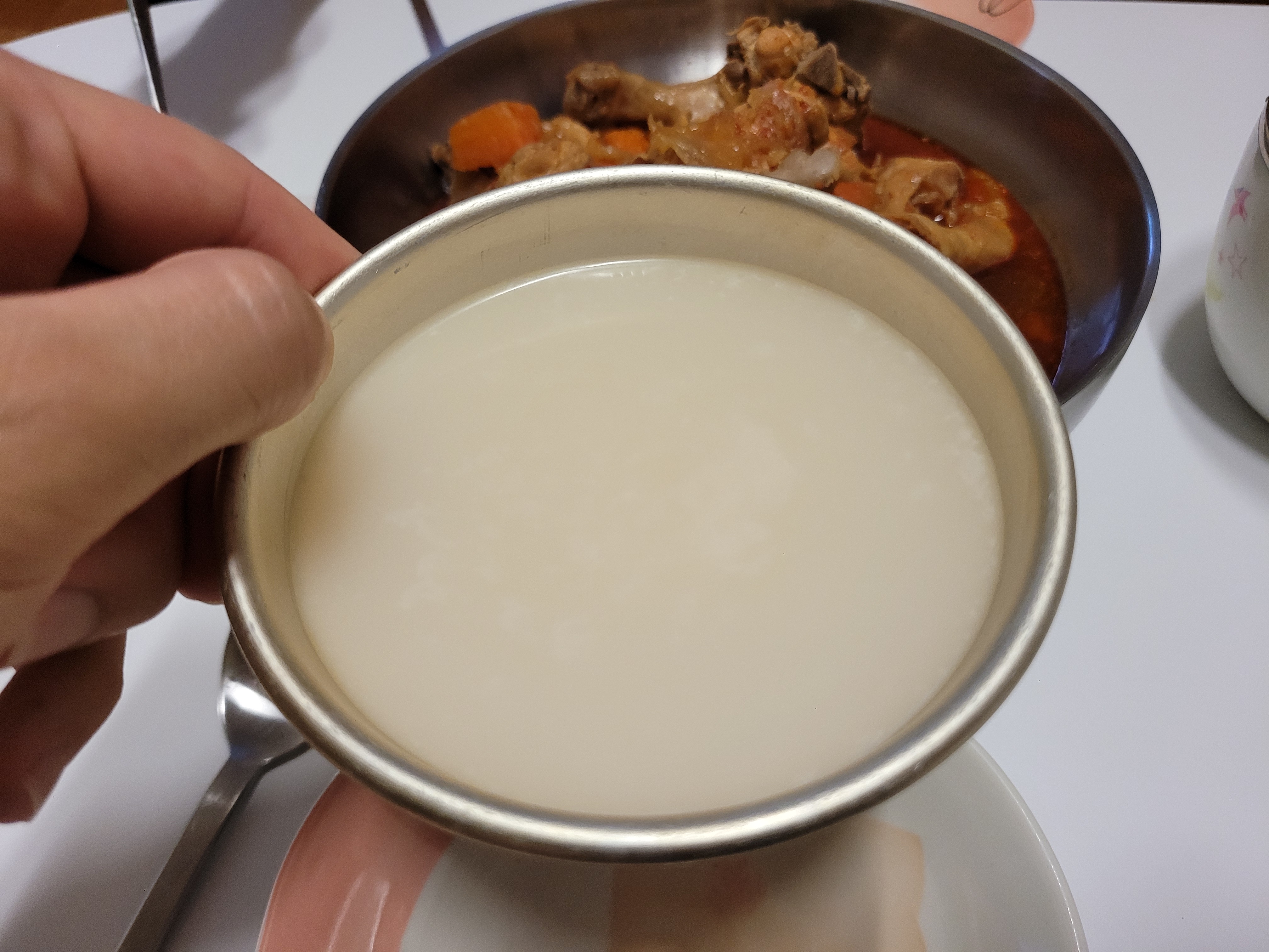 흔들지 않고 윗물만 마시면 살짝 새콤한 청주느낌이다.