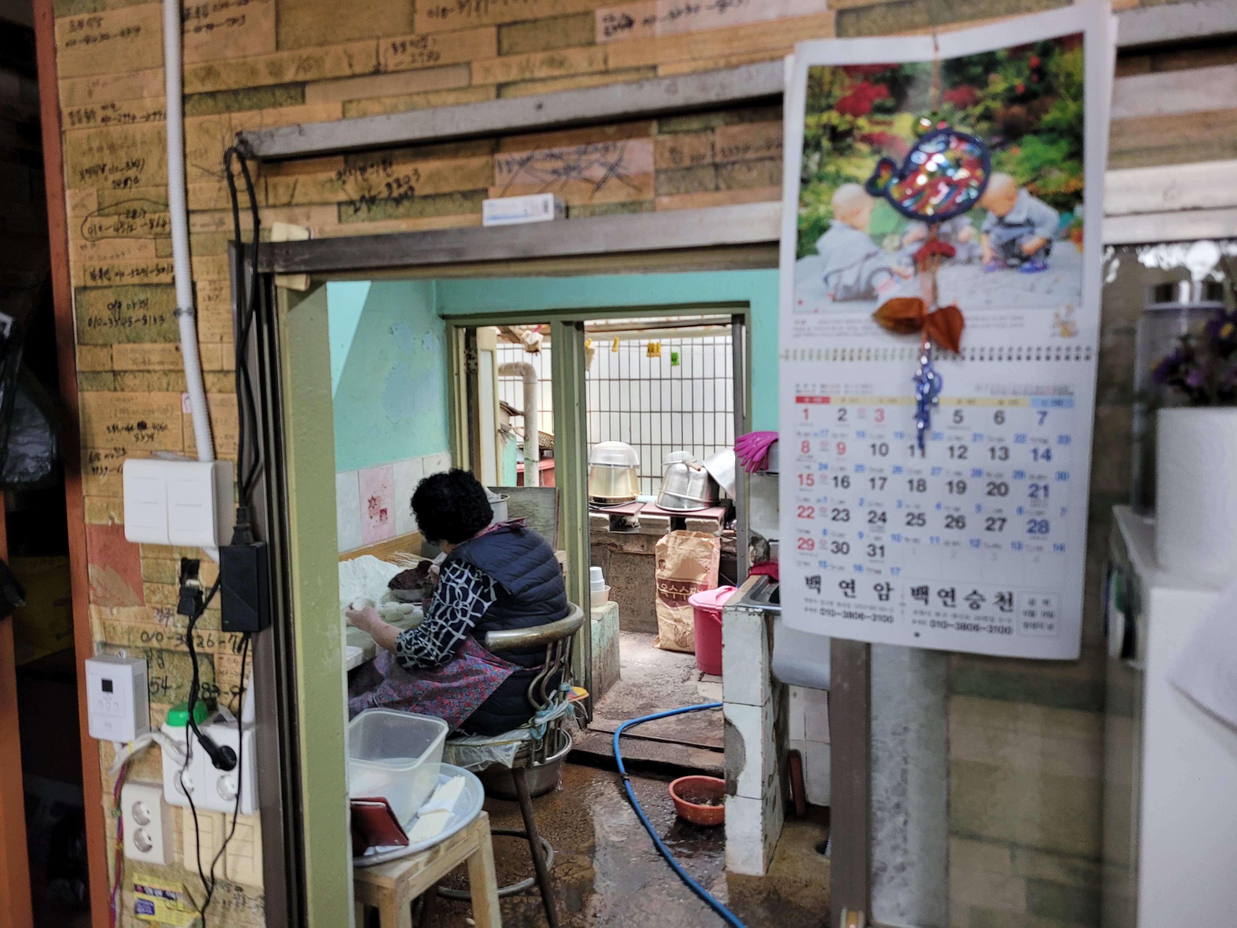 먹으면서 보니까 할머니가 직접 찐빵을 빚고(?) 만들고 계셨다