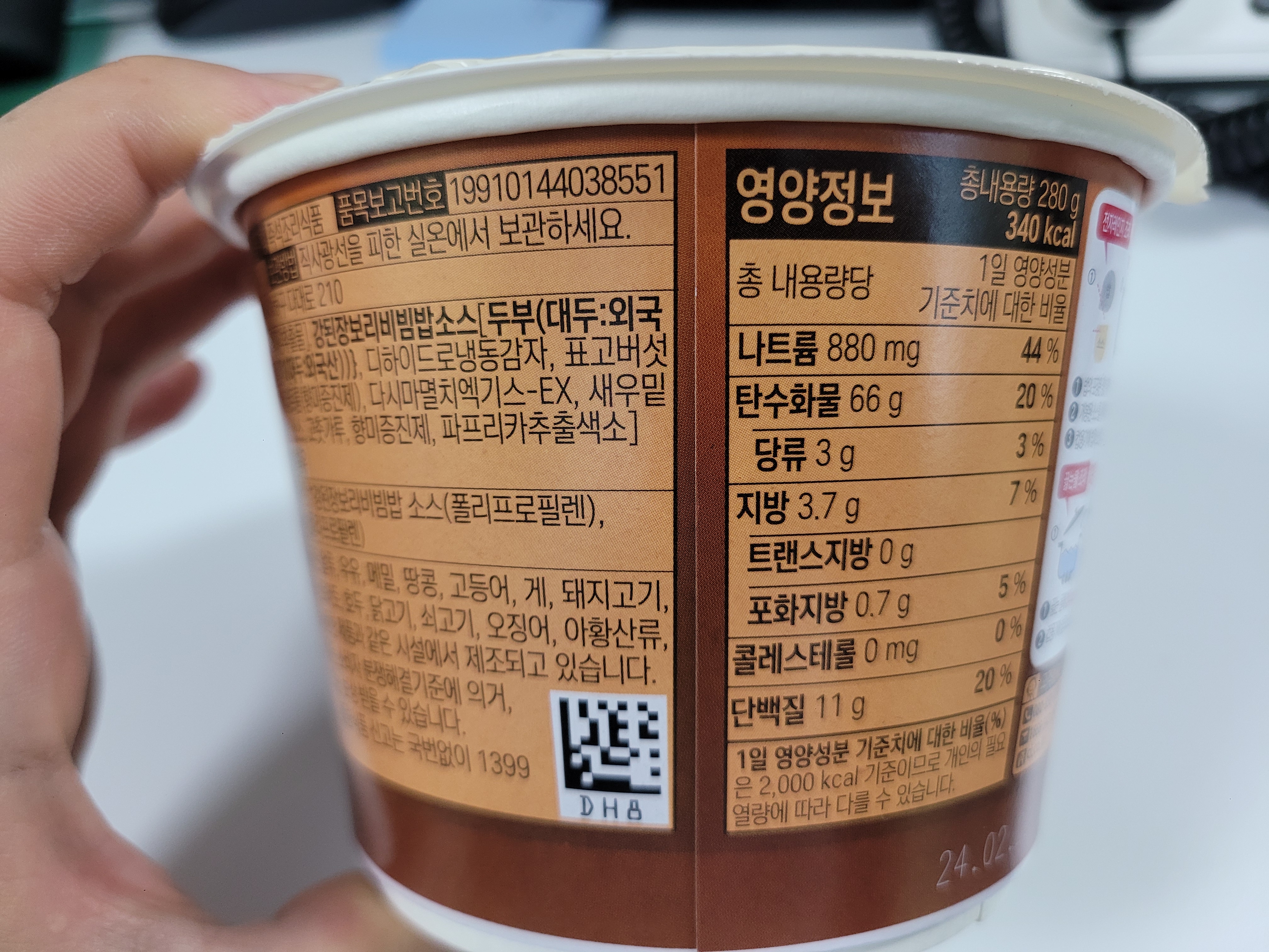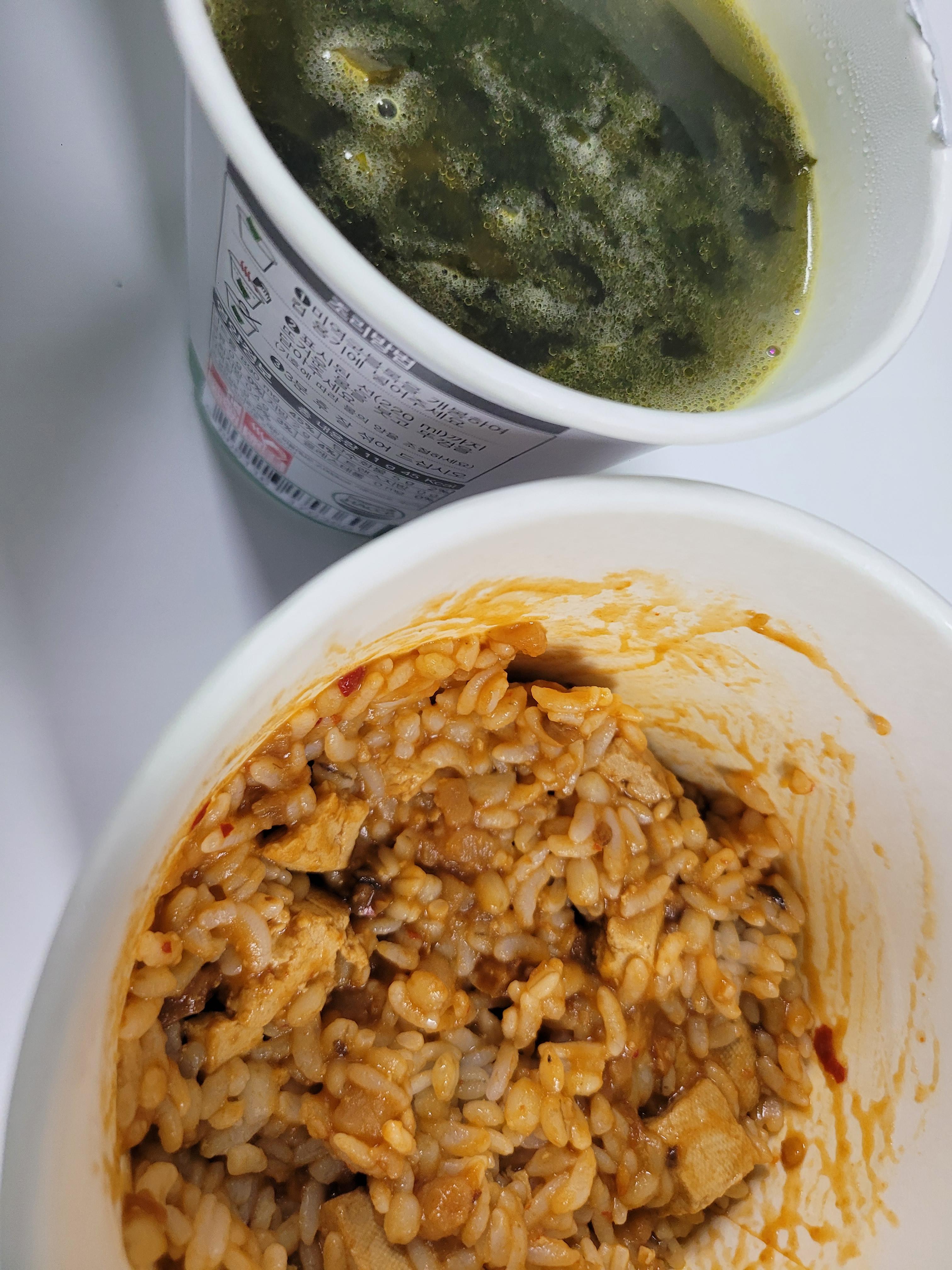오늘은 사무소 앞에 GS에서 한참 고민하다가 햇반컵반 강된장보리비빔밥이 1+1 이어서 이놈으로 집어왔다.