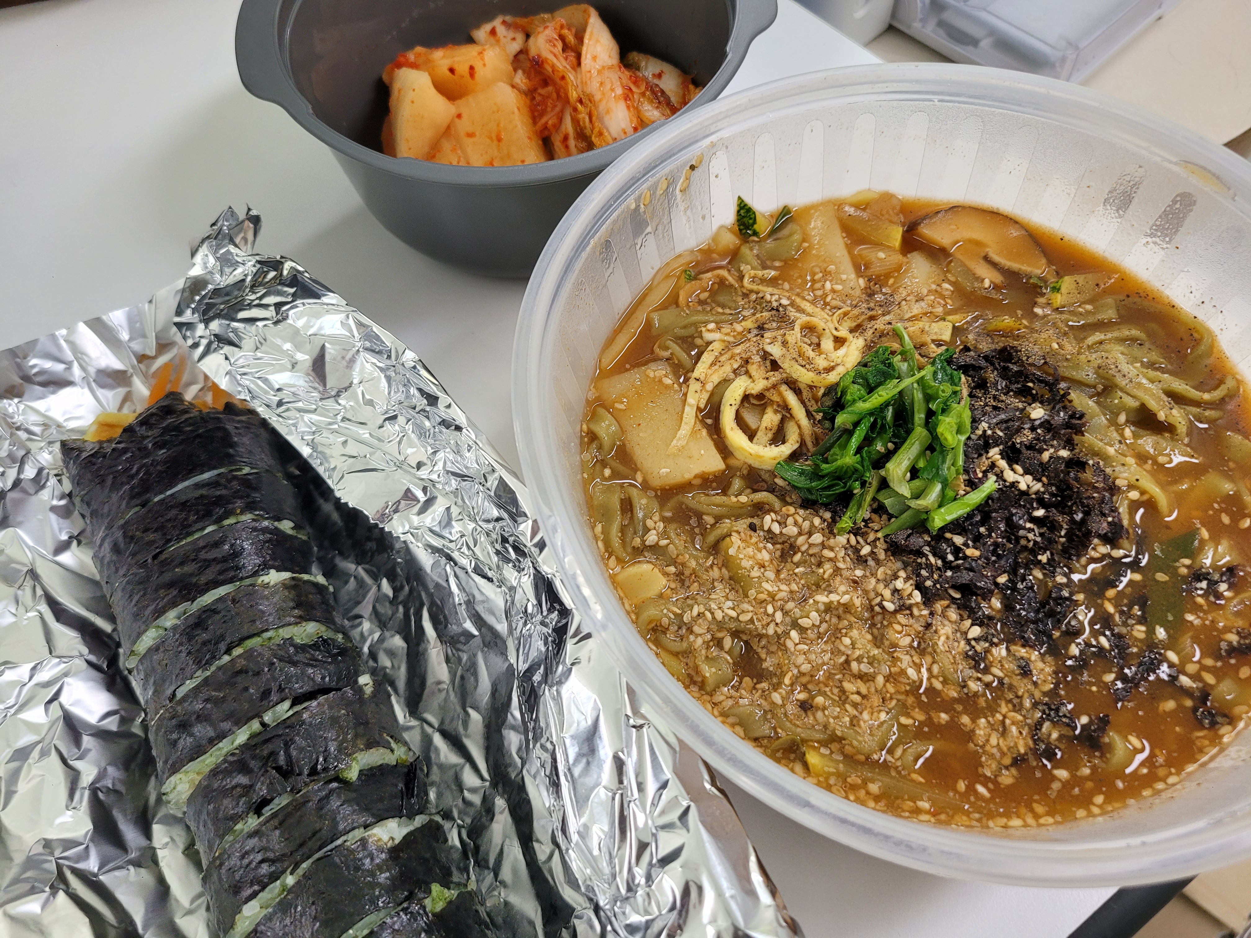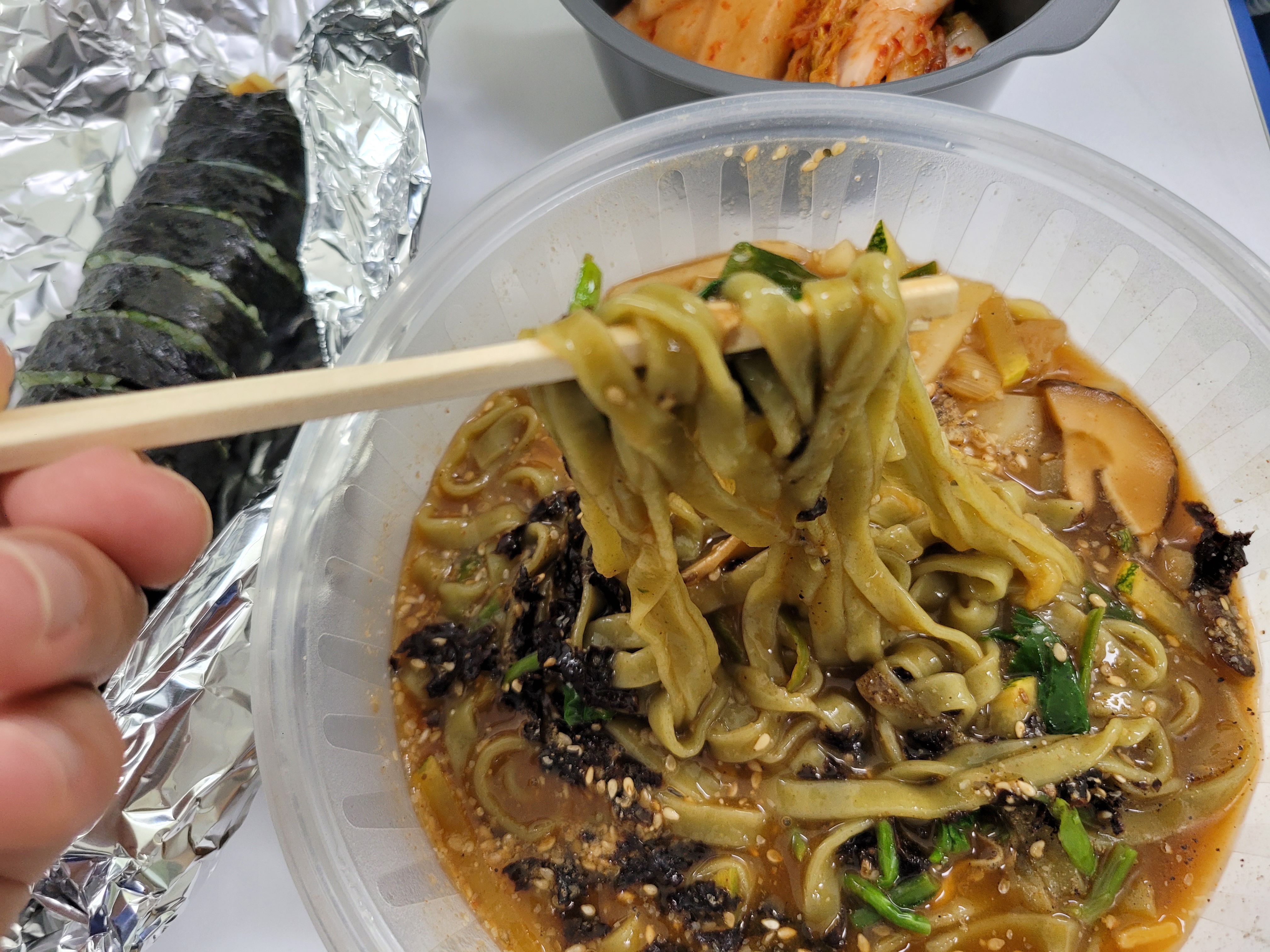 김밥을 사서 장칼국수 집에서 먹을 수 있다.