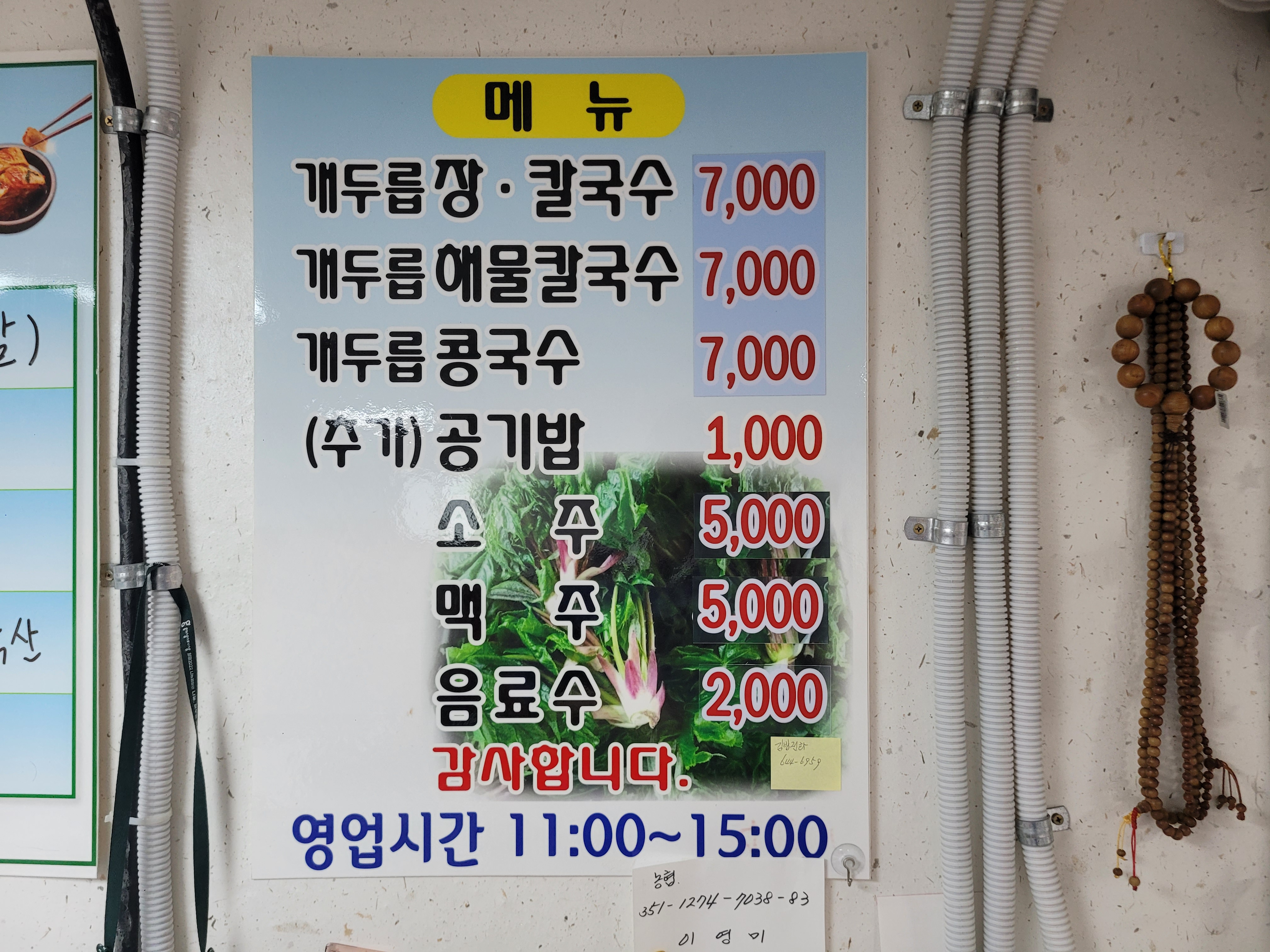 주소: 강원특별자치도 강릉시 사천면 미노길 56-1 개두릅장칼국수