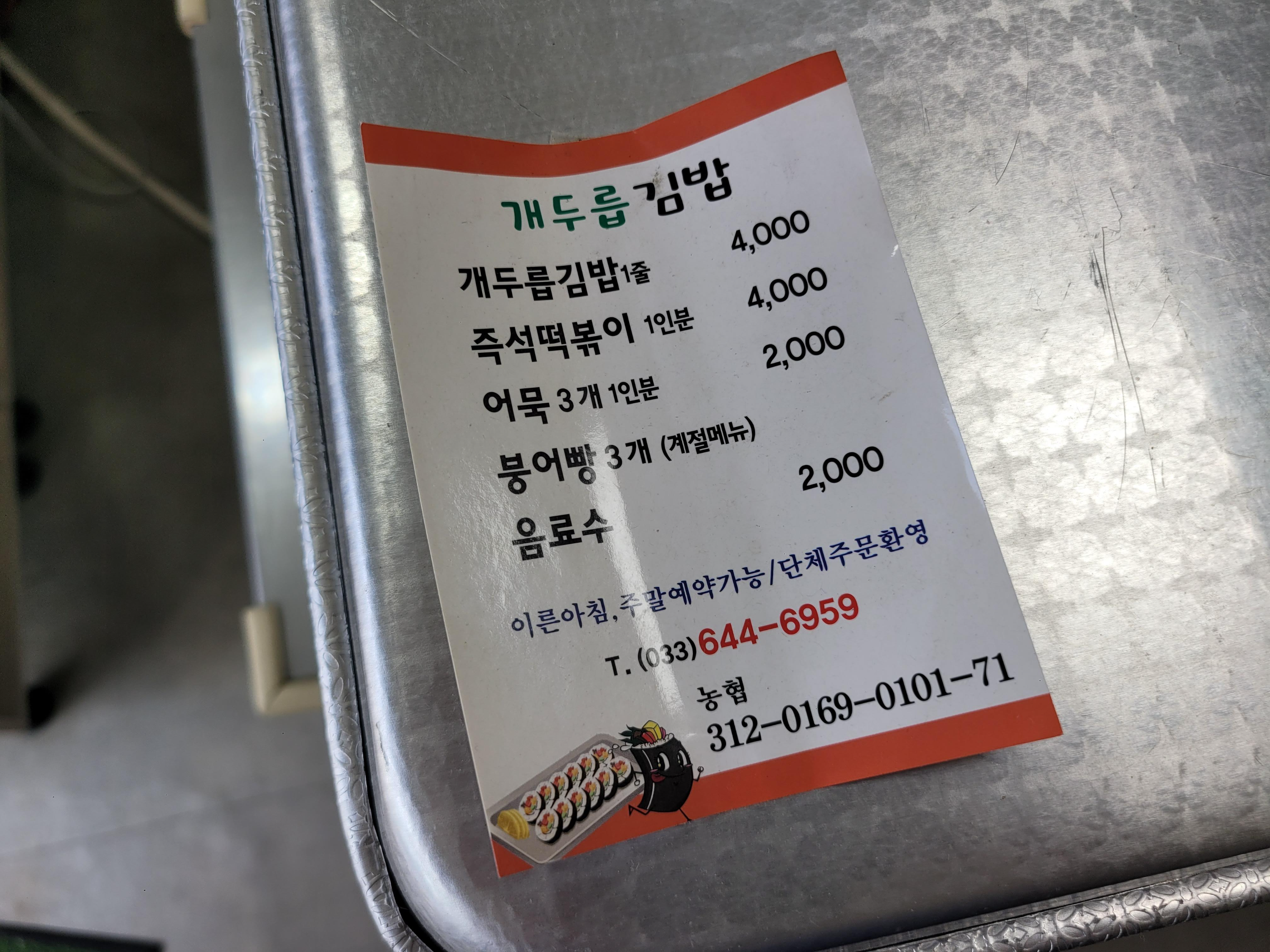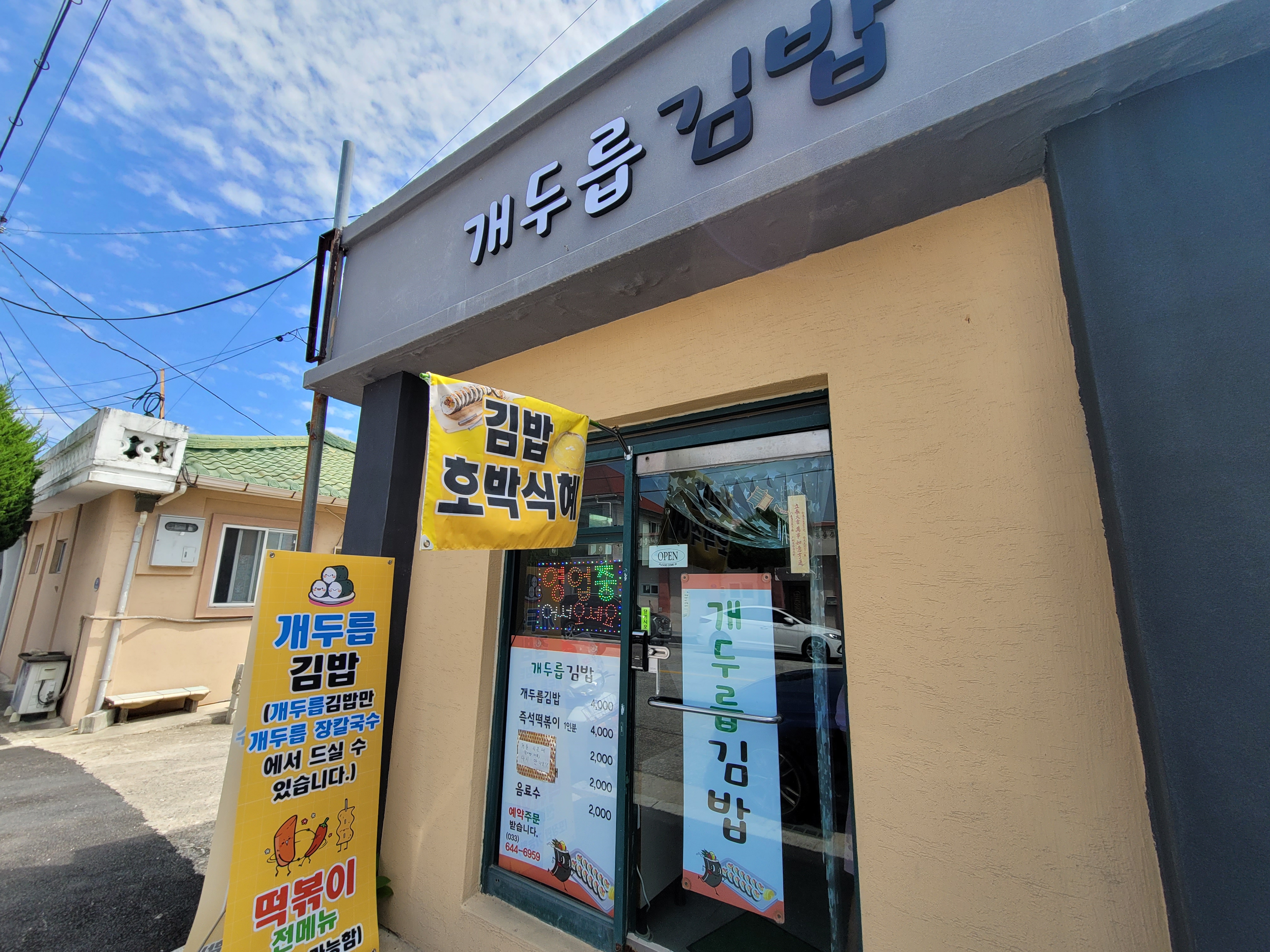 장칼국수집 바로 옆에 개두릅김밥이 생겼다.