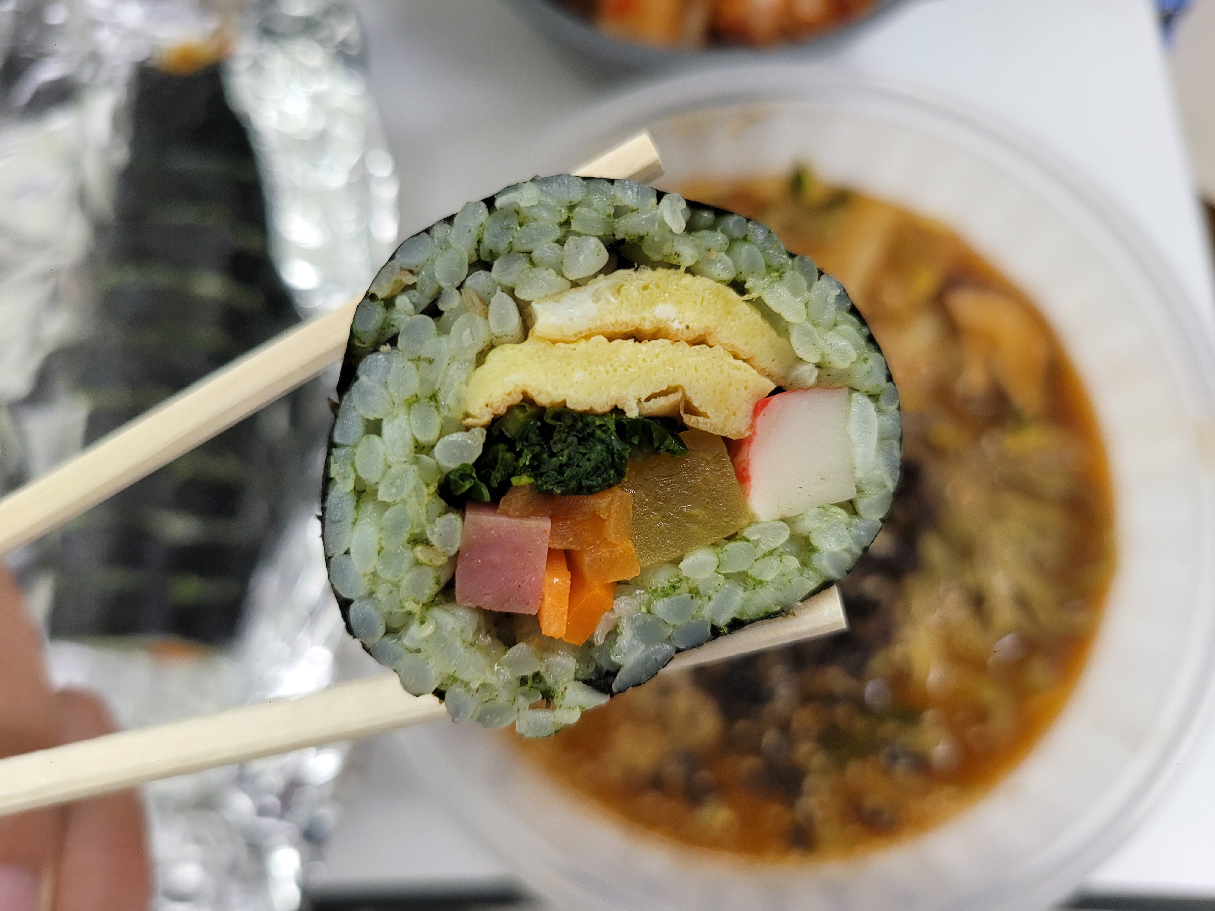 먹었을때 개두릅의 향과 맛이 엄청 잘 느껴지는 김밥이다.